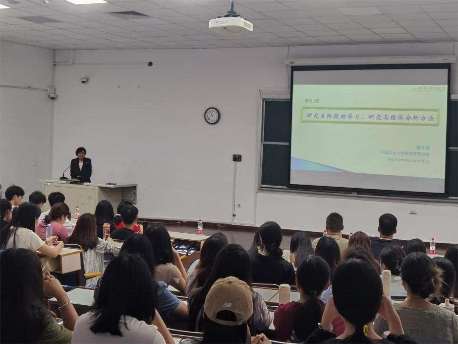 在《静观论坛》第88期《研究生阶段的学习、研究与经济分析方法》讲座上,穆月英教授从研究生阶段的学习目标和研究工作、经济数据与数据理解、经济分析方法、测算结果解读与分析几个方面由浅入深进行讲解,引导新生科学规划学习、科研和实践等活动,从宏观上为员工读研生涯提供学习方法,明晰未来目标和方向。