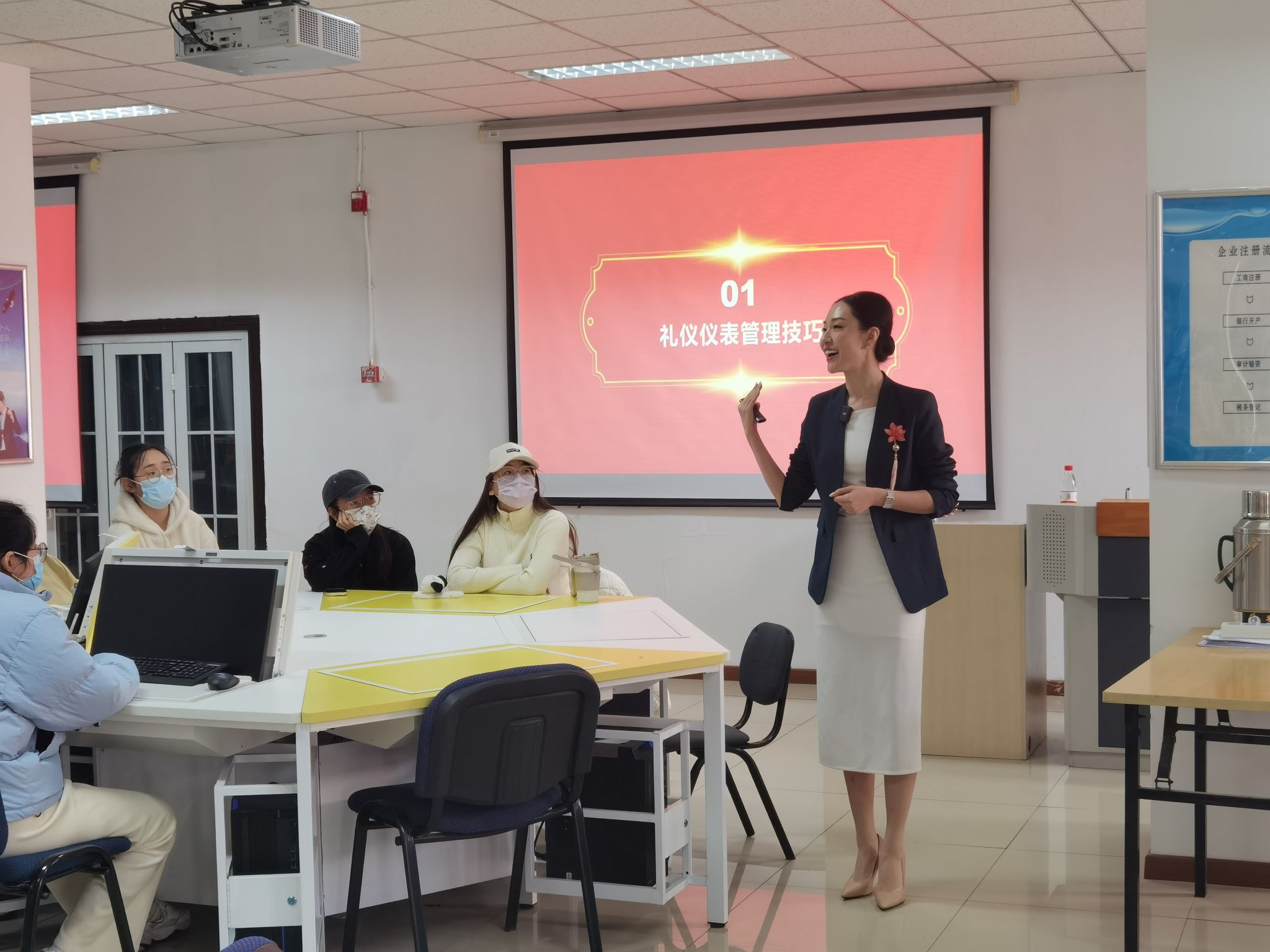 王老师经验丰富,讲解生动有趣,分别就礼仪仪表技巧管理、应用礼仪仪态训练、应用礼仪规范几个方面进行介绍,讲解过程中,大家积极互动,针对同学们的问题给予示范,让同学们在轻松愉悦的氛围中学到了很多实用的技能和方法。